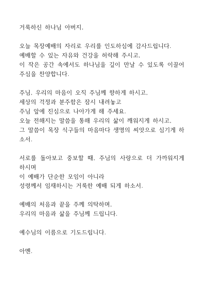 이번 글에서는 목장예배 기도문을 안내해 드리겠습니다.