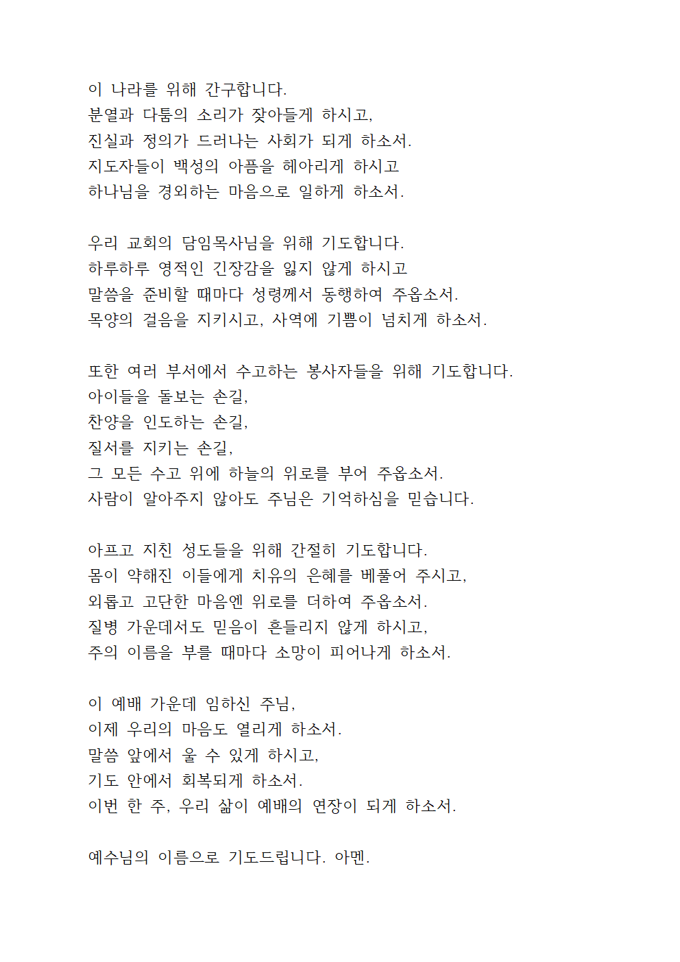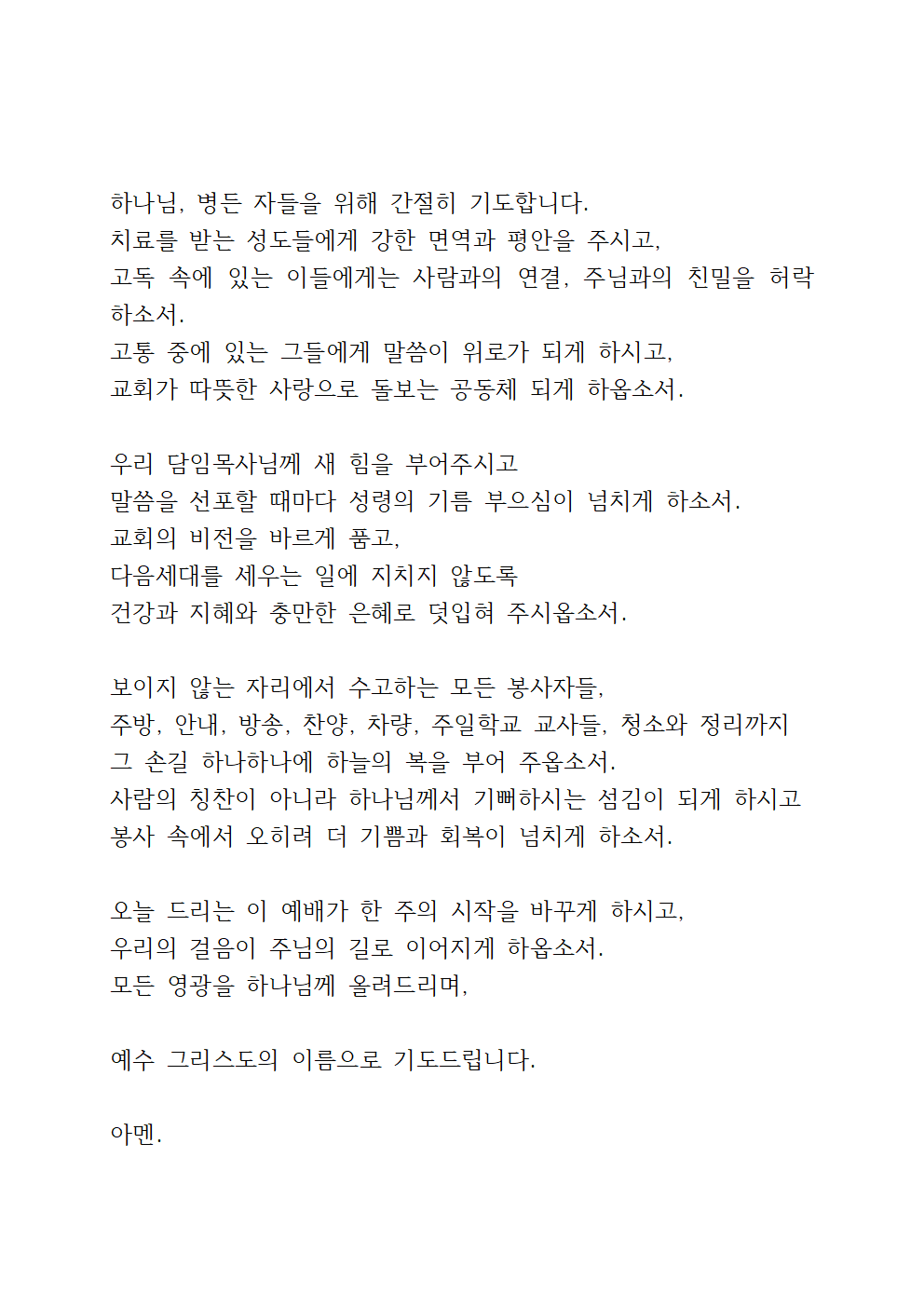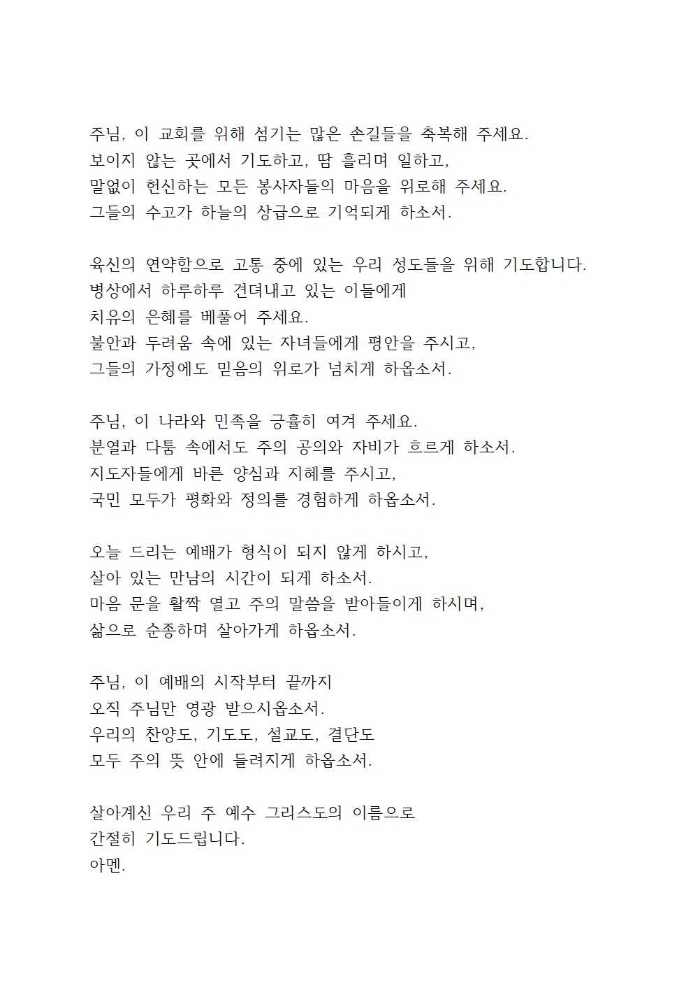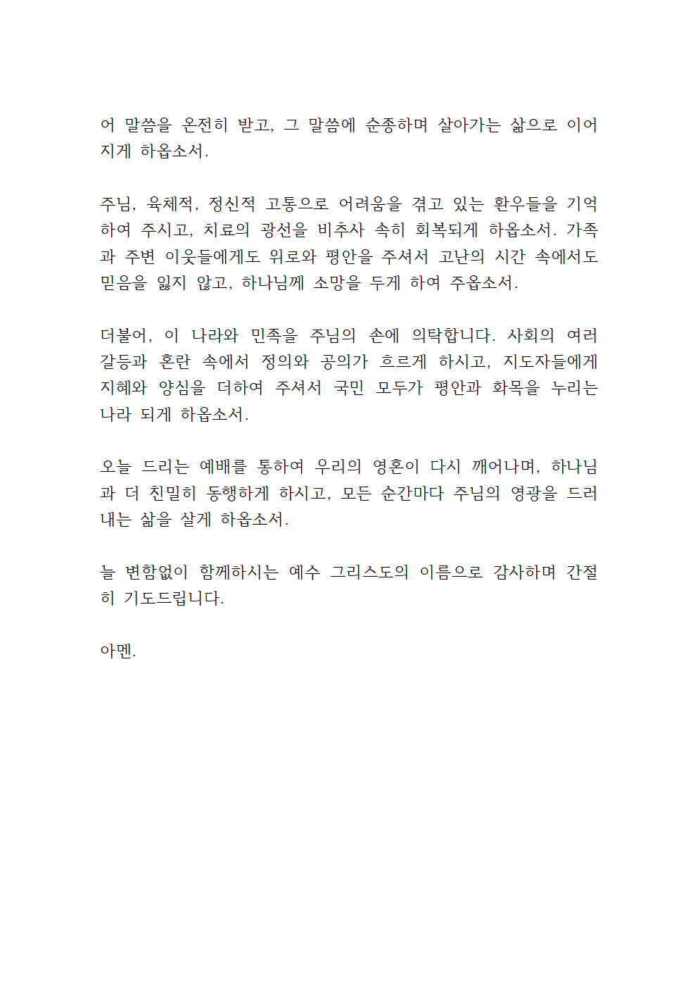 우리 주 예수 그리스도의 이름으로 기도드립니다.