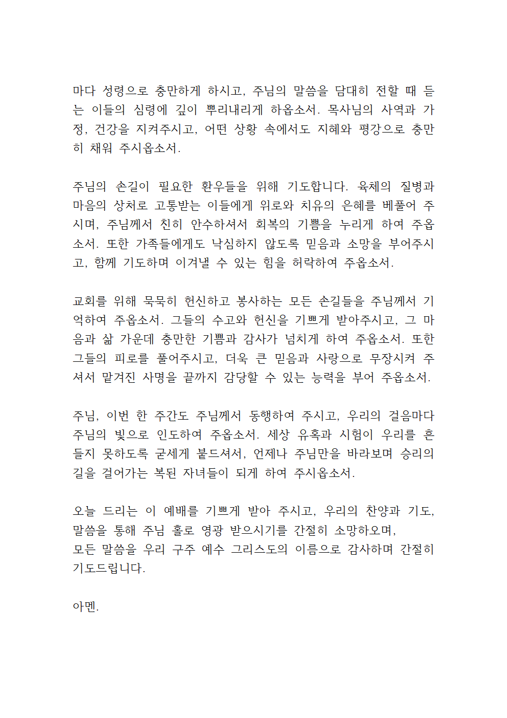 7월 첫째 주일낮예배 대표기도문 (pdf 첨부)